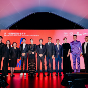 (以下是符合要求的文章,共约1200字)—海风裹着电子乐节奏掠过克罗伊塞特海滩时,那个红灯笼造型的LOGO正在LED屏上旋转。当地时间5月15日晚,戛纳电影市场官方海滩的白色帐篷里,端着香…