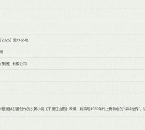 根据国家电影局2025年7月发布的备案立项公示,一部名为《千里·江山图》的电影项目正式亮相,由上海电影(集团)有限公司备案,著名编剧张冀执笔。该项目改编自作家孙甘露荣获多项文学大奖的长篇同名小说《千里…
